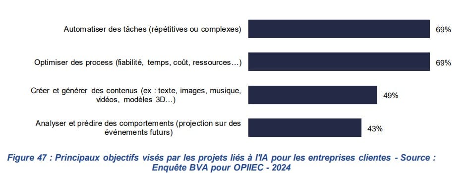 - Cependant, 27 % des tâches des salariés français pourraient être automatisées d’ici 2030, voire 45 % à l’horizon 2035 (étude McKinsey, 2024).