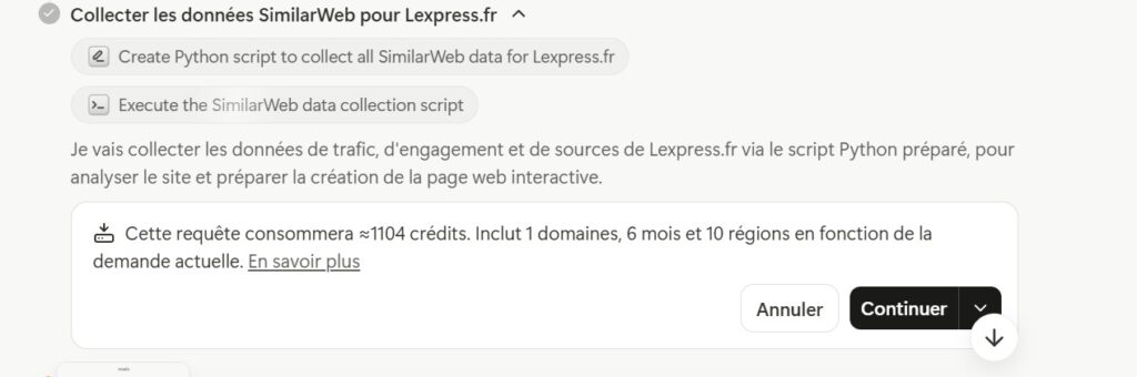 Tout cela sans abonnement Similarweb direct, uniquement via les crédits Manus.