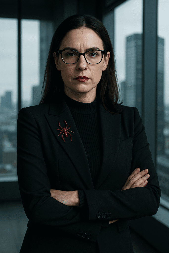 La Marionnettiste du Net affiche un style vestimentaire sophistiqué et assumé, digne des plus hauts cercles du pouvoir. Elle porte souvent des tailleurs impeccables de grand couturier (on murmure qu’elle privilégie les créations Alexander McQueen ou Prada), toujours rehaussés d’une touche futuriste comme un bijou connecté dissimulant un capteur. Son esthétique est forte mais reste crédible : couleurs sobres rehaussées d’un accessoire audacieux, coupes impeccables et matières luxueuses. Jamais un faux pli – elle choisit ses tenues avec la même exigence maniaque que les informations qu’elle exploite, n’arborant que des pièces de la toute dernière collection. Dans un salon feutré comme dans une conférence tech, sa présence imposante et son look affûté annoncent clairement qu’elle est aux commandes, sans qu’elle n’ait besoin d’élever la voix.