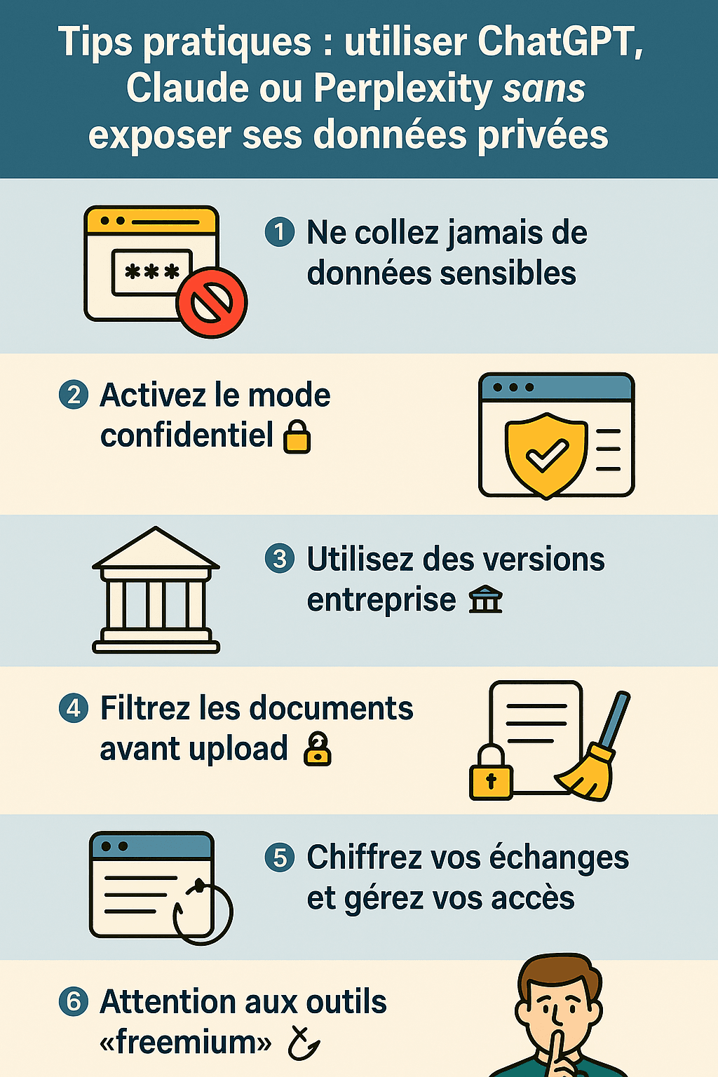 1️⃣ Ne collez jamais de données sensibles 🛑